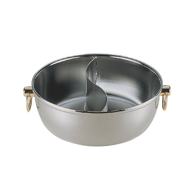 IH対応のしゃぶしゃぶ鍋やちり鍋、うどんすき鍋などが楽しめる卓上鍋です。サイズ:φ302×108mm、[厚さ]1.5mm材質:BAクラッド鋼板容量:5.6L品番:290017φ302×108mm