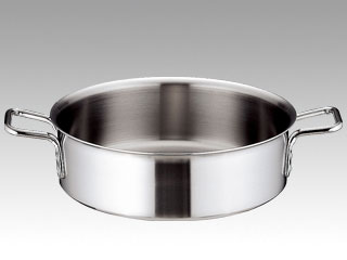 トリノシリーズ。ステンレス三層鋼。業務用電磁調理器対応鍋。パワー入力、熱伝導、熱効率にすぐれた材質・構造。鍋全体で温める為、焦げ付きにくく煮物・カレー・シチューには最適!平ビス使用で洗浄ラクラク!ハンドルはプロのアイデアをもとに設計!新開発三層鋼でIHクッキングヒーターに最適!プロの料理人も絶賛!熱伝導の良いアルミを保温力のあるステンレスではさむことによって、軽くて耐久性に優れた理想的な業務用鍋が完成!IHクッキングヒーターに対して高い熱効率と早い立ち上がりに優れています。