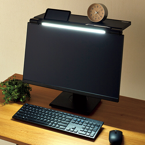 ディスプレイの上を有効活用!小物を置けるから机上がスッキリ!前面に手元や顔を照らせる2wayライト付!