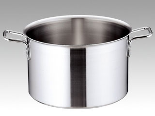 トリノシリーズ。ステンレス三層鋼。業務用電磁調理器対応鍋。パワー入力、熱伝導、熱効率にすぐれた材質・構造。鍋全体で温める為、焦げ付きにくく煮物・カレー・シチューには最適!平ビス使用で洗浄ラクラク!ハンドルはプロのアイデアをもとに設計!新開発三層鋼でIHクッキングヒーターに最適!プロの料理人も絶賛!熱伝導の良いアルミを保温力のあるステンレスではさむことによって、軽くて耐久性に優れた理想的な業務用鍋が完成!IHクッキングヒーターに対して高い熱効率と早い立ち上がりに優れています。