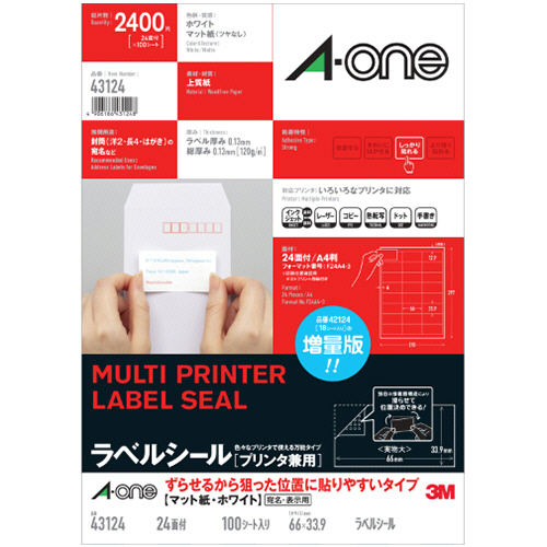 ●A4・24面(四辺余白付)のラベルシール、100シートです。