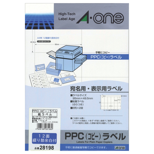PPC(コピー)ラベル (宛名・表示用) A4 12面 49.5×95mm 1冊(100シート)