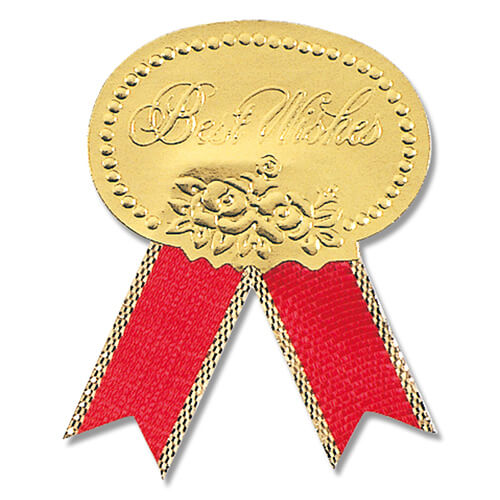 サイズは縦30×横40mmの英字入りギフトシール。材質は艶金ホイル紙、色は高級感の印象がある金色に鮮やかな印象の赤いリボンが付いてます。シールの手軽さとリボンの華やかさを兼ね備えた商品です。リボンを結ぶのが苦手な方にも、貼るだけなので簡単。ギフトボックスや紙袋などのラッピングにいかがでしょうか。
