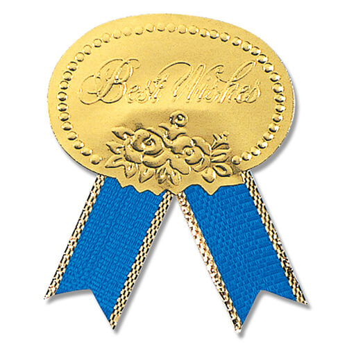サイズは縦30×横40mmの英字入りギフトシール。材質は艶金ホイル紙、色は高級感の印象がある金色に上品な印象の青いリボンが付いてます。シールの手軽さとリボンの華やかさを兼ね備えた商品です。リボンを結ぶのが苦手な方にも、貼るだけなので簡単。ギフトボックスや紙袋などのラッピングにいかがでしょうか。