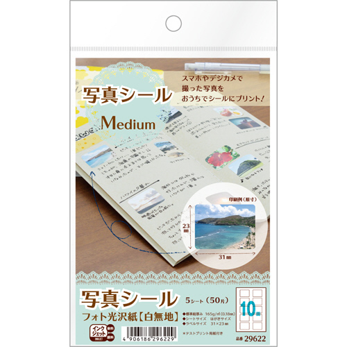 写真シール フォト光沢紙(白無地) はがきサイズ 10面 Medium 1冊(5シート)