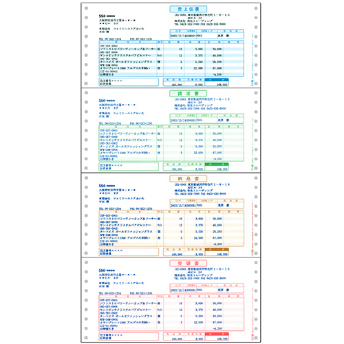 ●売上伝票 連続用紙 15インチドットプリンタ用 4枚複写