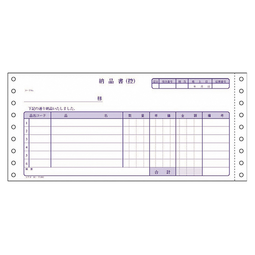 連続伝票用紙の、税額欄のないタイプの納品書。