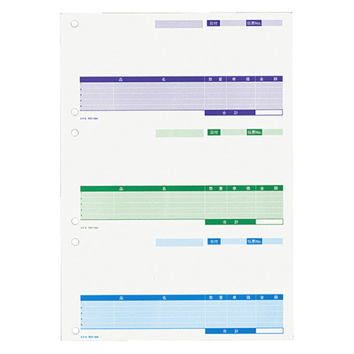 ●A4、3面付けの仕切書、刷色は紫/緑/青、250枚入りです。
