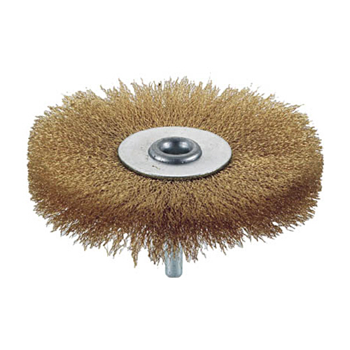 軸付ホイールブラシ(軸径6mm)(真鍮) 線径0.15mm 外径100mm 1個