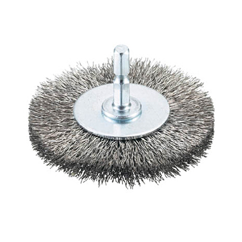 ●金具:スチール(鉄)材●線材:0.3mmステンレス線●線径(mm):ステンレス0.3●外径×毛丈×軸長×軸径(mm):75×19×27×6.35●金具径×金具幅(mm):37×12●最高使用回転数(rpm):3000●六角軸付のホイール(円盤型)ブラシ●10mm厚仕様●0.3mmステンレス線