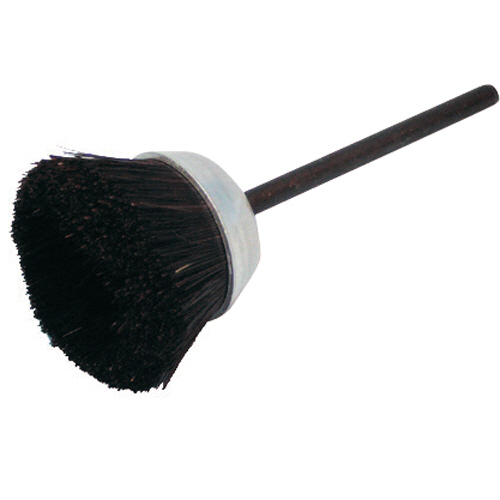 ●線径(mm):黒馬毛●外径×毛丈×軸長×軸径(mm):25×11×38×3.0●最高使用回転数(rpm):25000●使用工具:エアーマイクログラインダー、電動工具全般。(2.4~3.0mmチャック)●摘要:精密加工品のバリ取り、金型研磨