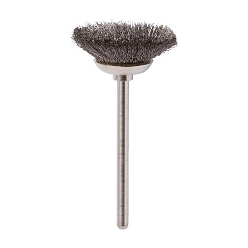 ベベル型で斜めに毛が出ているので細かいコーナー研磨に最適。使用工具:変速式電動マイクログラインダー。