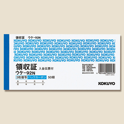 紙の裏面に複写用のカーボンが塗布してあるバックカーボンタイプの領収証です。