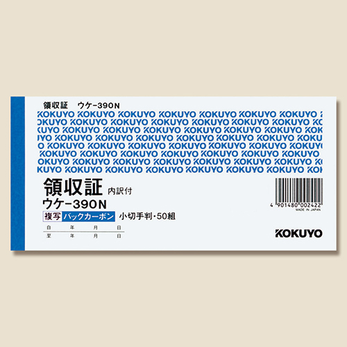 コクヨ 領収証 バックカーボン2枚複写 スポットタイプ 小切手判 ヨコ型 ウケ-390 50組/冊