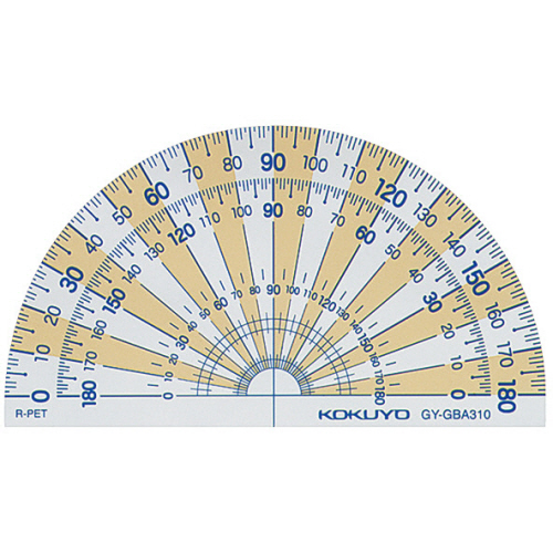 ●左右どちらからでも角度を測れるように、両方から目盛りを付けました。