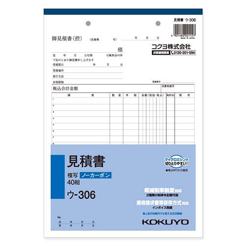 ●メーカー品名:NC複写簿ノーカーボン見積書B5タテ型18行40組