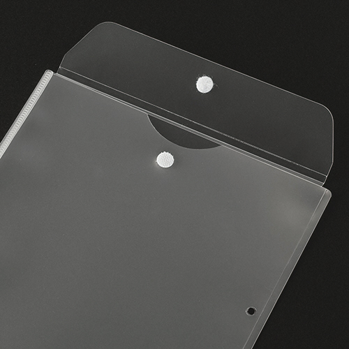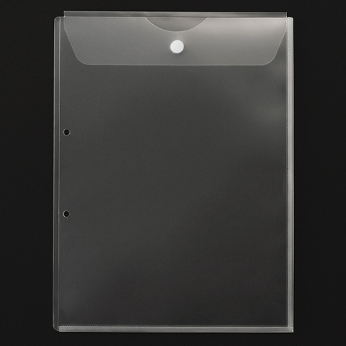 2穴ファイルに収納できる、便利なフタ・マチ付ホルダー。