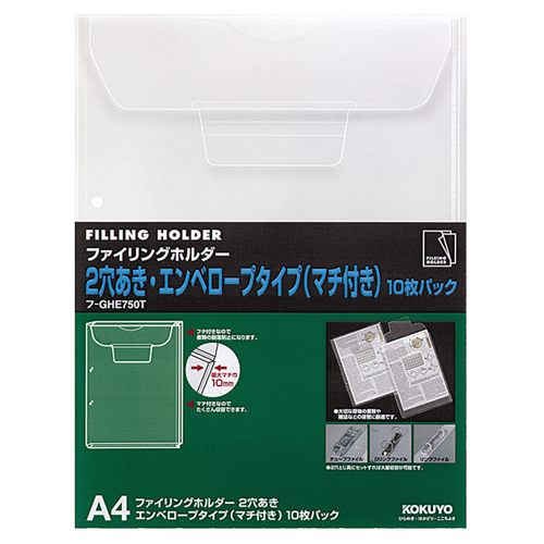 ファイルにとじてそのまま保管ができる封筒タイプ。かさばらず検索しやすい薄型で、多枚数に便利な10mmのマチ付き。
