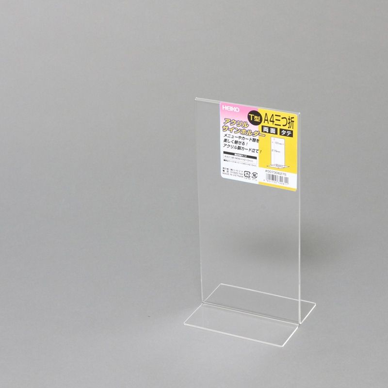 アクリルサインホルダー T字両面 A4三つ折 縦