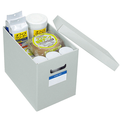 ストックボックス(フタ付き) 内寸180×322×260mm グレー 1個