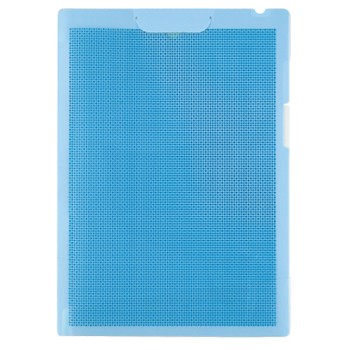 ●厚めのボードと簡易クリップがついているからカモフラージュカバーをめくってそのまま書き込みOK!色はブルーです。