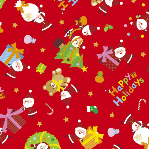 ●小さなサンタがプレゼントを用意する可愛いシーンを特色の赤ベースで印刷しました。使いやすい半才判サイズ、50枚入の三つ折仕立てです。