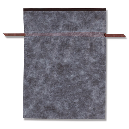 不織布を2層に重ねたギフト巾着袋。両脇のリボンを引っ張って結ぶだけの簡単ラッピング。ベースのブラウン色の上に薄手の白を重ねることで、やさしく上品なイメージのギフトに仕上がります。底にマチがあって広がるので、見た目よりも容量があります。
