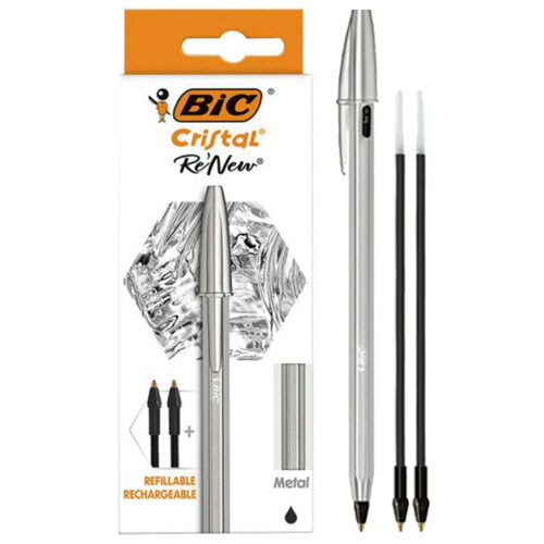 ●本体と一緒に2本の替え芯をセットしており、交換して使うことができるリフィラブル方式を採用しています。ボール径1.0mm、軸色メタルシルバーです。