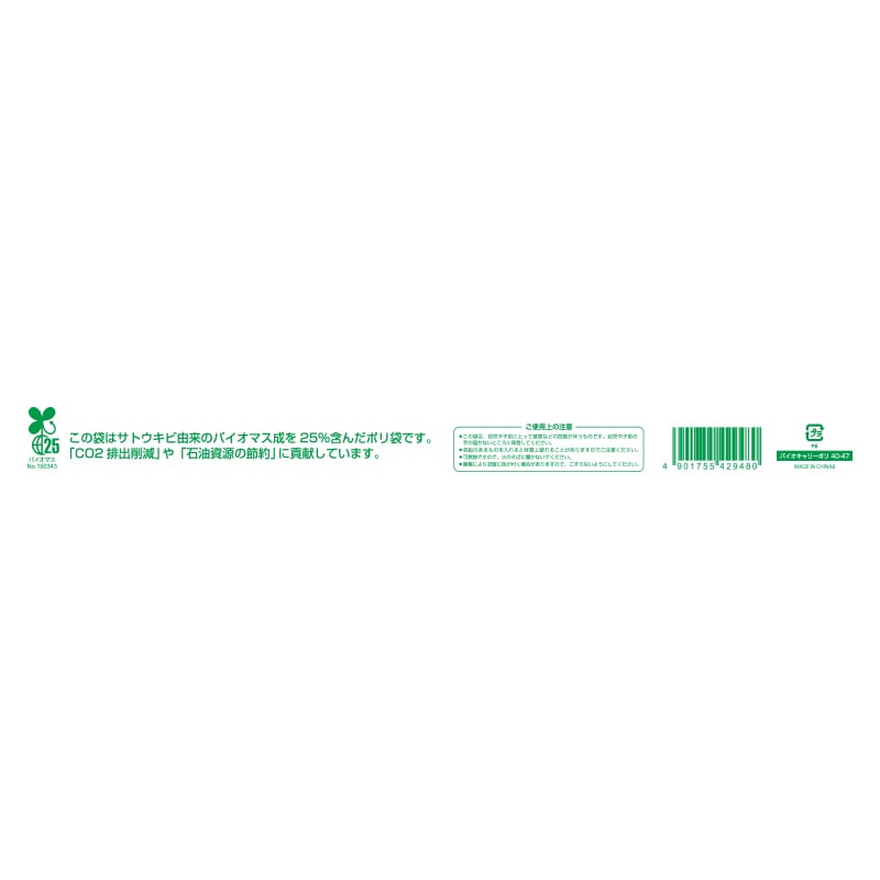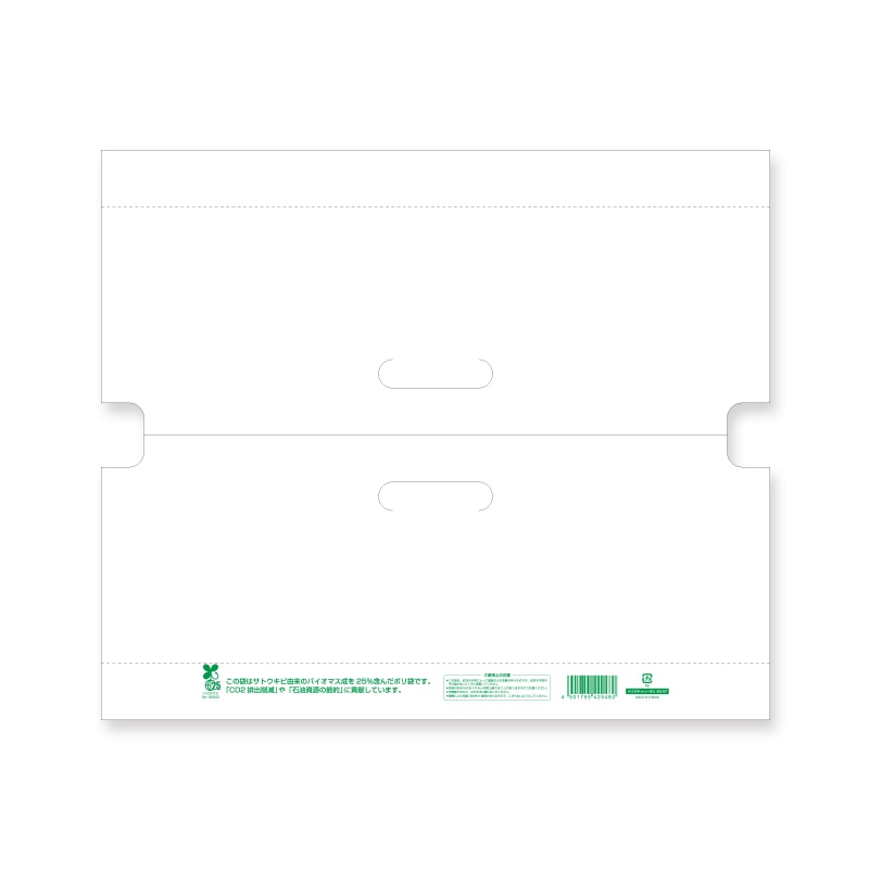 ● 生物由来の有機資源を原料としたバイオマス成分を25%含んだ手抜きタイプのポリ袋です。
