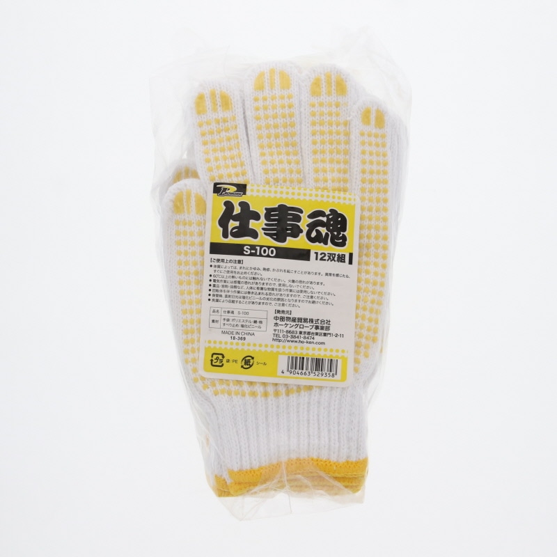 軍手S-100 仕事魂 すべり止め付 12双