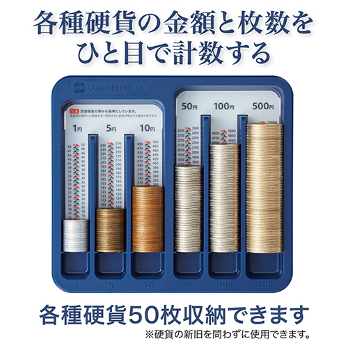 コンパクトでせまい場所でも快適なコインキーパー。金額と枚数をひと目で計数。