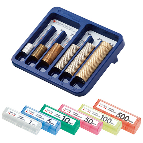 ●コインケースは仕切り付(10枚毎)、角形で転がらず取り扱いに便利です。金庫での保管や釣り銭