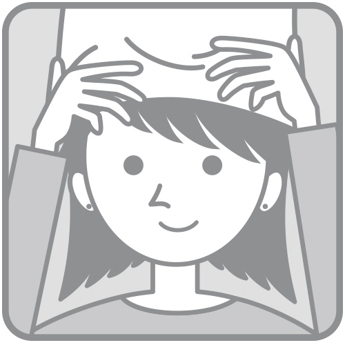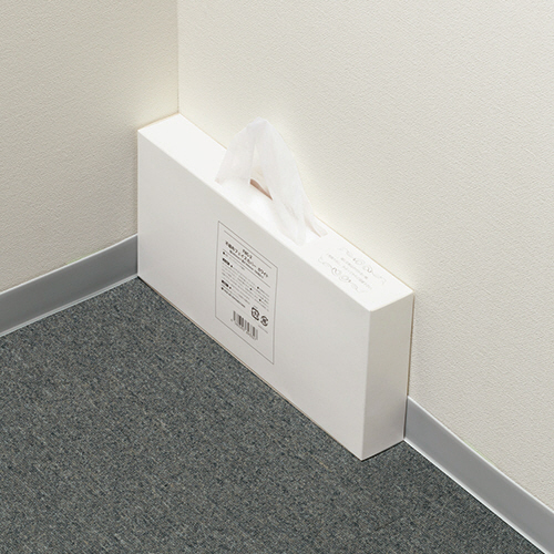 試着時にメイクから商品を守るフェイスカバー。床を広く使える壁立てタイプ。
