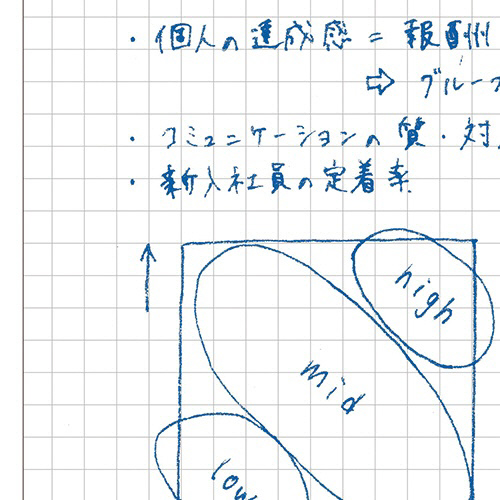●図や表が書きやすい5mm方眼罫。上部にタイトル欄があります。