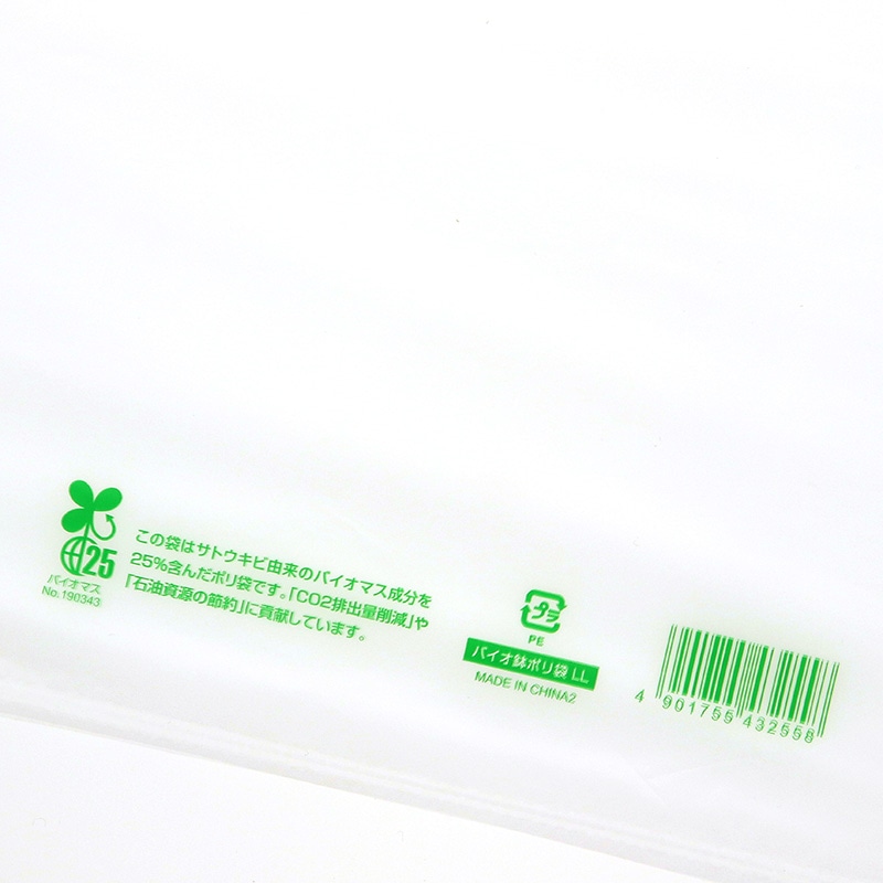 ● ●入数:100枚【印字内容】この袋はサトウキビ由来のバイオマス成分を25%含んだポリ袋です。