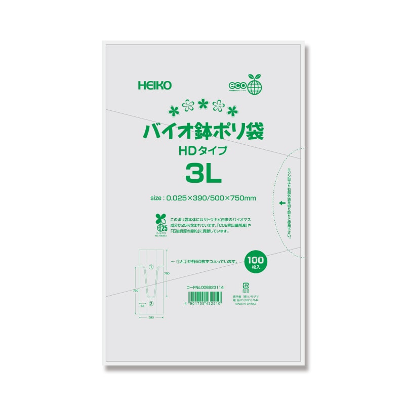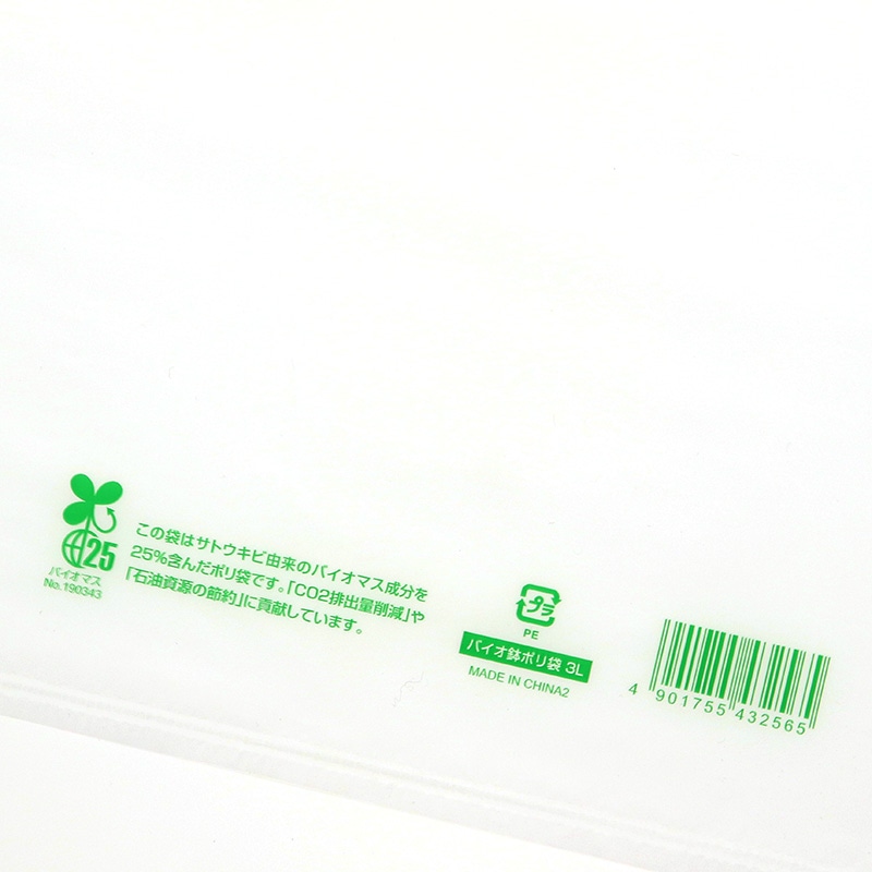 ● ●入数:100枚【印字内容】この袋はサトウキビ由来のバイオマス成分を25%含んだポリ袋です。