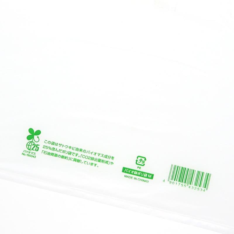 ● ●入数:100枚【印字内容】この袋はサトウキビ由来のバイオマス成分を25%含んだポリ袋です。