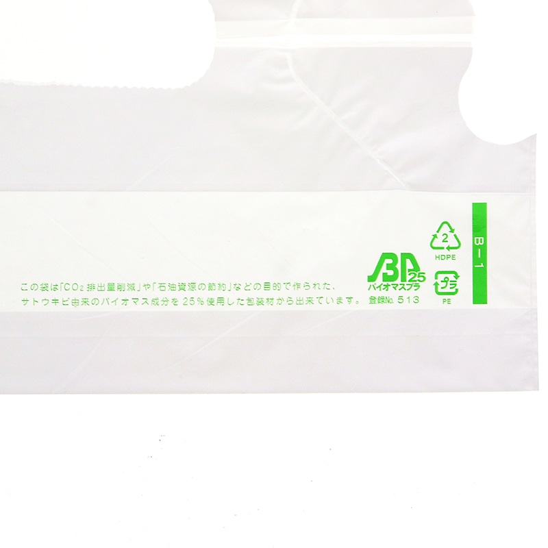 ● 生物由来の有機資源を原料としたバイオマス成分を25%含んだ手抜きタイプのポリ袋です。