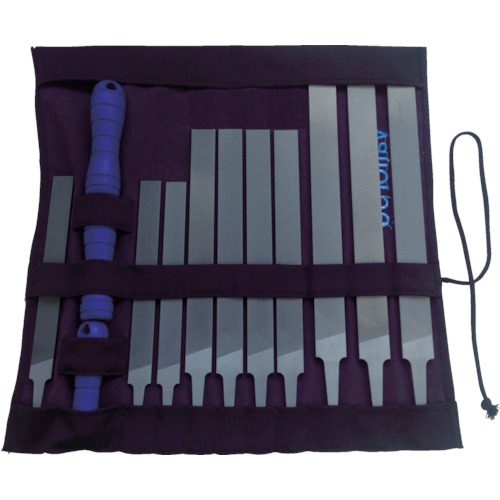 ●鉄工ヤスリ10種LP1163-8-00、-0、-1、LP1163-10-000、-00、-0、-1、LP1163-12-000、-00、-0(各1本)とグリップ3種AL510、AL610、AL710(各1本)を専用ケースにセット