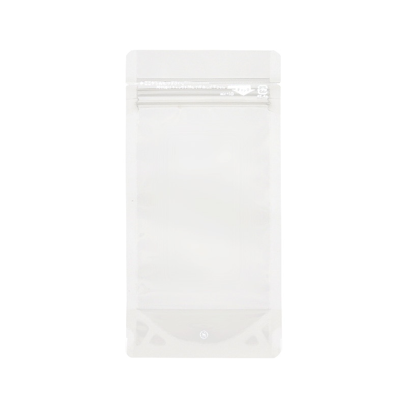● ●乾燥剤使用不可●脱酸素剤使用不可●概算内容量:110cc●サイド6mmベタシール●底舟形シール●4角Rカット●チャック上ベース加工●チャック上易カットミシン目加工●Rノッチ●入数:50枚。