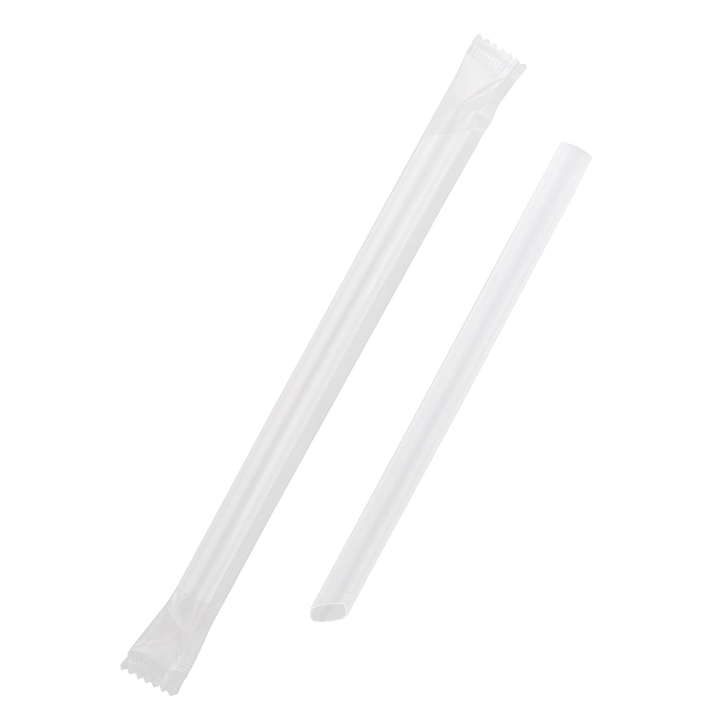 ● ストローの先が斜めカットされてとがっているので、フィルム包装の蓋のドリンクに便利です。