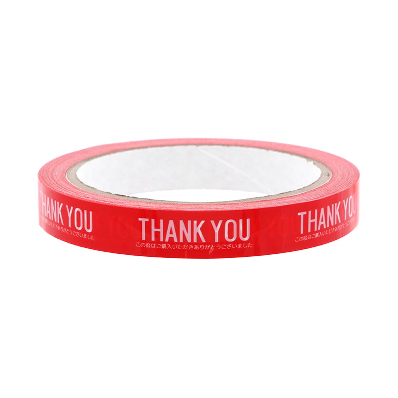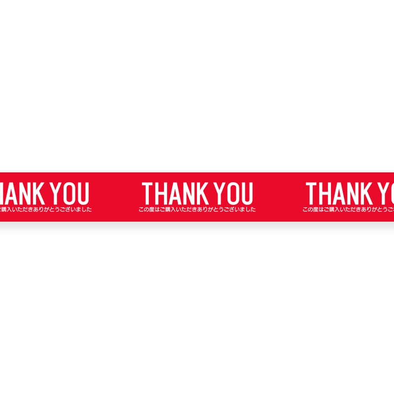 ● お買い上げ品の目印や袋の口留めに活躍する15mm幅のサンキューテープ。