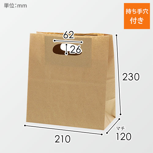 手穴角底袋(茶・小判抜き・幅210×マチ120×高さ230mm)