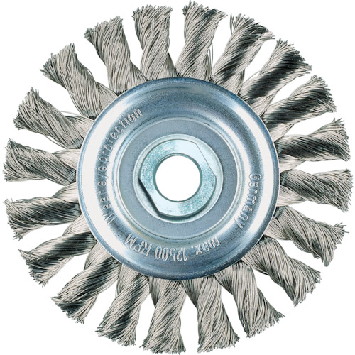 高品位の線材を使用したノット(ひねり)加工品で、高い研削力と研掃力に優れている長寿命品です。