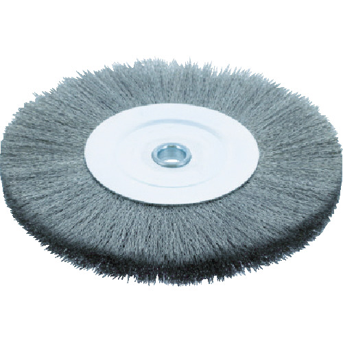 ●円盤状のブラシの中心に穴が開いていて工具、機械などに同径の軸がついていれば取り付けが可能です。