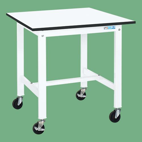 ●外寸:W900×D750×H840mm●全高:840mm●本体色:ホワイト●均等耐荷重:200kg●質量:24kg●キャスター:100φゴム車●天板種類:ポリエステル天板●改正RoHS10物質対応