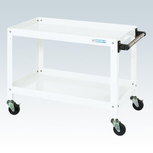 ●外寸:W600×D450×H600mm●本体色:パールホワイト●均等耐荷重:120kg●質量:12kg●キャスター:75φゴム車●段数:2●改正RoHS10物質対応●「支柱突き合わせ方式」●皿型・フラット型に使いわけ!!