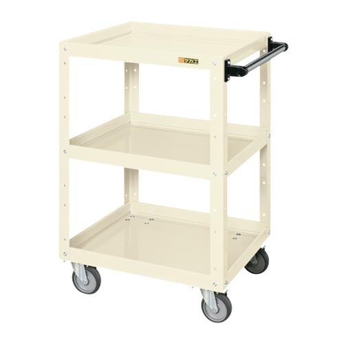 ●外寸:W750×D500×H893mm●均等耐荷重:200kg●カラー:アイボリー●質量:23kg●キャスター:100φエラストマー車(自在4個)●サカエ独自の堅牢構造「突き合わせ内蔵方式」●棚板は皿型・フラット型変更可能