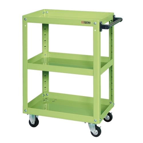 ●外寸:W600×D400×H880mm●カラー:サカエグリーン●均等耐荷重:150kg●質量:17kg●キャスター:75φゴム車(4輪自在)●支柱突き合わせ方式、棚板は皿型・フラット型変更可能●中棚:50mmピッチで段替え可能●オプションフロアストッパーもございます。