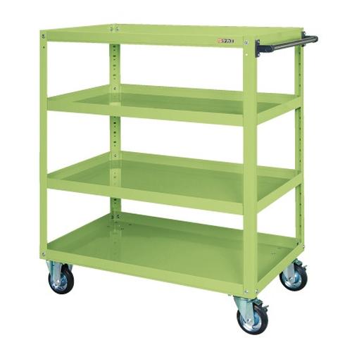 ●外寸:W1000×D650×H1200mm●カラー:サカエグリーン●均等耐荷重:400kg●質量:57kg●キャスター:125φゴム車(自在2・固定2)●支柱突き合わせ方式、棚板は皿型・フラット型変更可能●中棚:50mmピッチで段替え可能●オプションフロアストッパーもございます。